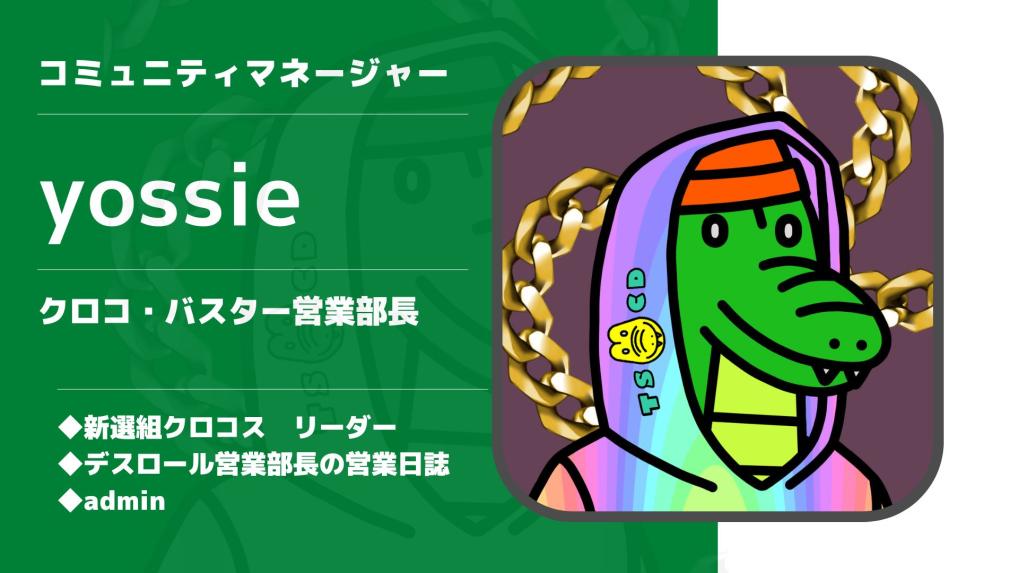 Founder:クリプトン教授 Digital - NFT SPACE CROCOS OpenSea Physical - Apparel SPACE CROCOS STORE Physical - Camping Coming Soon!! MEMBER twitter:@Professor___c 伝説のnote:NFTで夢が叶った話とジェネラティブについて 伝説のnote:NFT×ファッション twitter:@yossie_NFT twitter:@edu_learn_hack twitter:@metaanaa_eth twitter:@goheimochi555 twitter:@bekorina NEWS Tweets by spacecrocos LINK Treasure Crocodiles OpenSea クリプトン教授/professorcrypton.eth オリジナルグッズ SPACE CROCOS Instagram SPACE CROCOS Discord yutapapa-ユウタパパ- site creation